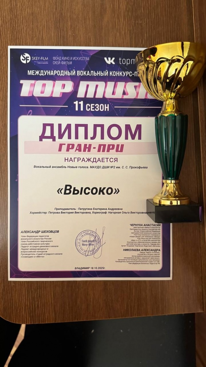 Поздравляем победителей Международного вокального конкурса-премии "Top music", который проходил 18.10.2025, в г. Владимире: