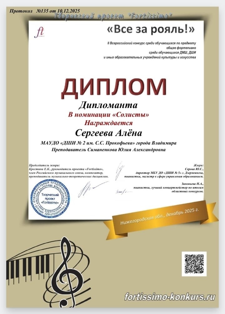 Поздравляем участников I Всероссийского конкурса обучающихся по предмету общее фортепиано "Все за рояль!"